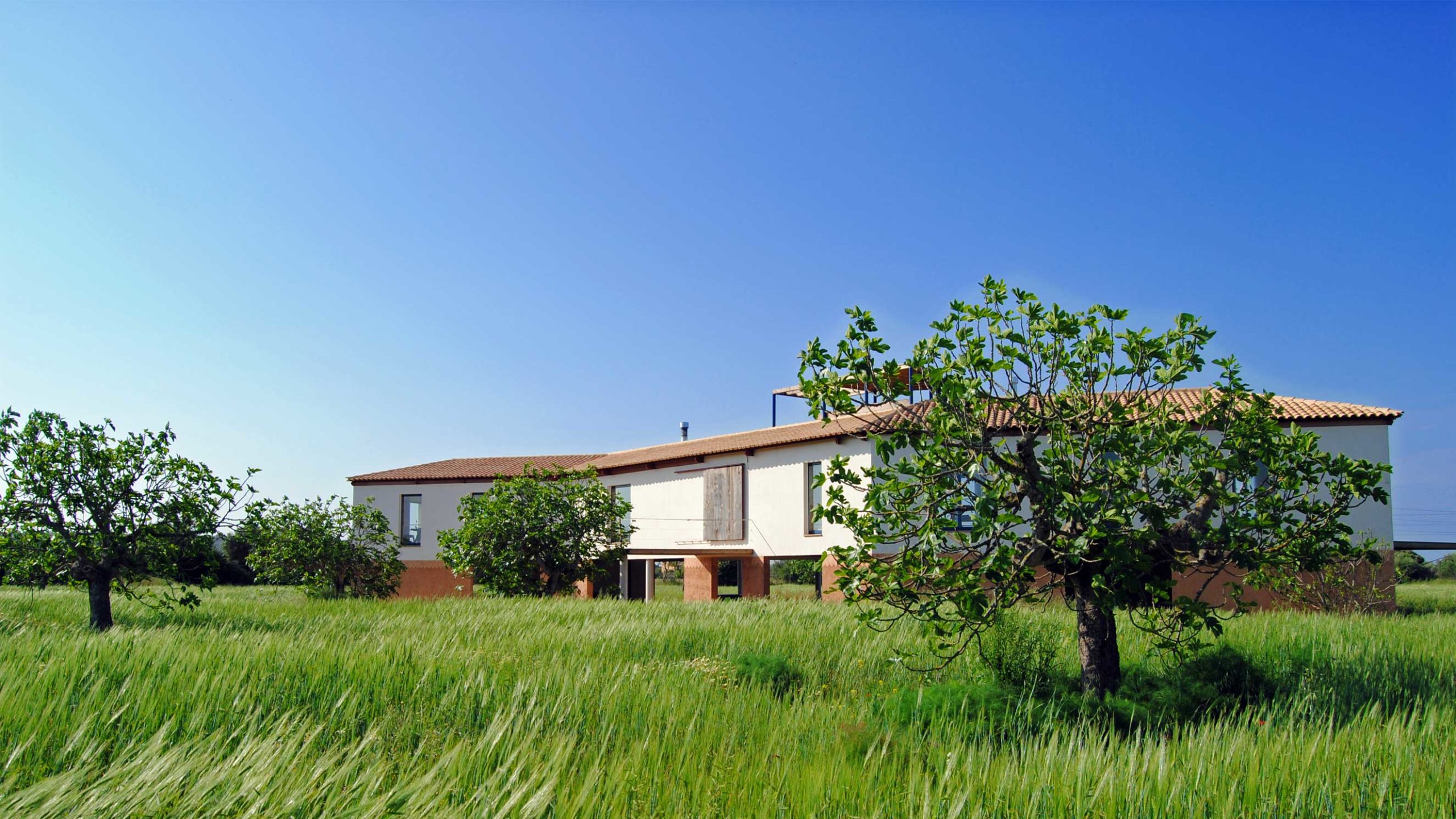 The living area at the height of the fig trees. Northern facade